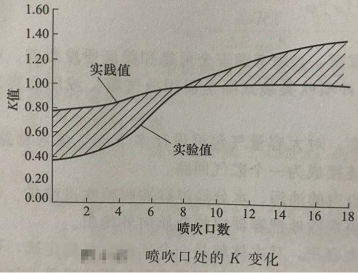 K為噴吹口氣流流量與平均值的比例,可參考下圖取,也可由實(shí)驗(yàn)確定。