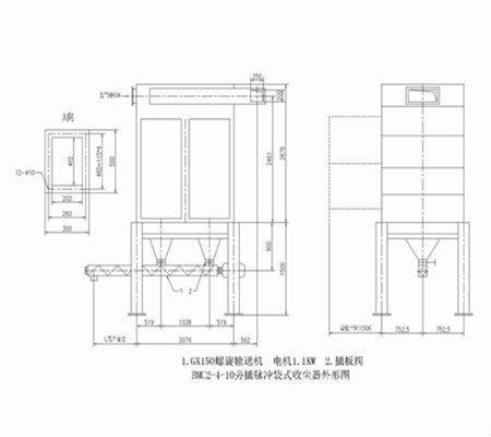 2、塵氣部分:塵氣入口設(shè)在氣箱部分上部,箱內(nèi)裝有濾袋。