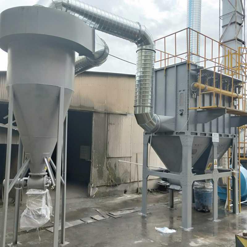 打磨車間粉塵中如果有大的粉塵顆粒的情況下,四明環(huán)保工作人員建議客戶選用旋風(fēng)加布袋除塵器,因為旋風(fēng)除塵器都是碳鋼制作而成。不存在后期的維護(hù)費用。而且旋風(fēng)除塵器利用離心力的作用把粉塵中大的顆粒全部 過濾 出來 了,細(xì)小干燥的粉塵進(jìn)入布袋除塵器。這樣減少了大的粉塵顆粒對于除塵布袋的摩擦,從而延長了除塵布袋的使用壽命,提高了除塵器的過濾精度。從性價比上來分析,加旋風(fēng)除塵器后期的維護(hù)費用更低,效果更好。現(xiàn)在我司專業(yè)技術(shù)人員就對于浙江現(xiàn)場工況進(jìn)行全面的分析。作出詳細(xì) 的解決方案